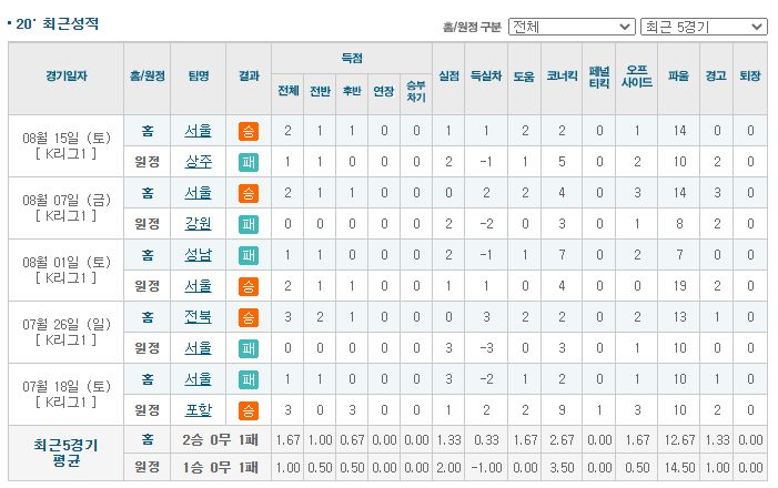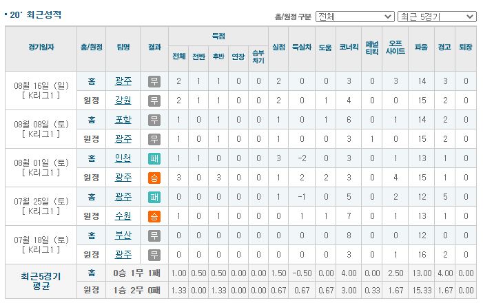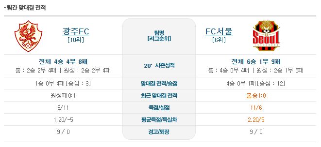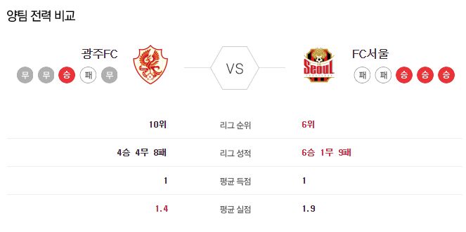 ▶광주 vs 서울 5경기 전적 1승 4패(광주 홈 1승 2패)