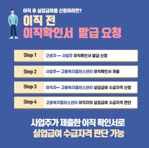 마지막으로 2020년 8월 29일 부터 근로자가 이직 후 실업급여를 신청하기 위해서는 이직 전 직장에서 발급받은 이직확인서가 있어야 신청 가능합니다. 이 서류는 근로자가 직접 작성하는 것은 아니고, 사업주 분들이 작성해서 4대보험 신고사이트에 확인서를 제출하게되고 이 서류를 토대로 이직자가 실업급여 지원 대상인지 여부를 판단하게 됩니다. 이직 계획이 있으시다면, 이직하기 전에 사업주에게 확인서 발급을 요청하셔야 합니다.