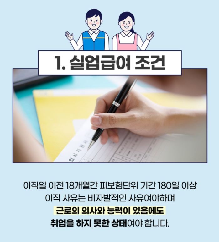 가장 중요한 부분은 자신이 실업급여를 받을 수 있는지에 관한 실업급여 조건입니다. 실업급여를 받기 위해서는 필수조건 4가지를 충족해야 다음 단계에 넘어갈 수 있습니다. 먼저 고용보험 가입일이 얼만큼이 되었는지를 알아야합니다. 실업급여도 바로 사회보험 중에 하나라 할 수 있습니다. 사회에서 발생될 수 있는 문제에 대해 나라에서 상황에 맞는 대처를 위한 공적부조인 것이라 할 수 있습니다. 따라서 고용보험에 가입되어 있는 사람만이 실업급여 조건에 해당이 됩니다.