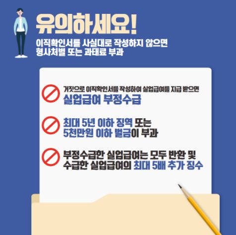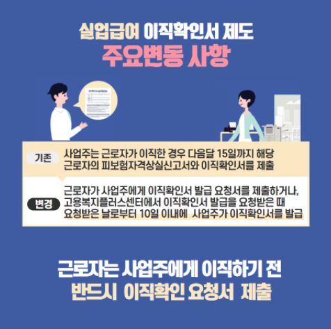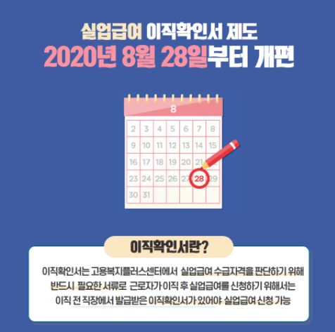 마지막으로 2020년 8월 29일 부터 근로자가 이직 후 실업급여를 신청하기 위해서는 이직 전 직장에서 발급받은 이직확인서가 있어야 신청 가능합니다. 이 서류는 근로자가 직접 작성하는 것은 아니고, 사업주 분들이 작성해서 4대보험 신고사이트에 확인서를 제출하게되고 이 서류를 토대로 이직자가 실업급여 지원 대상인지 여부를 판단하게 됩니다. 이직 계획이 있으시다면, 이직하기 전에 사업주에게 확인서 발급을 요청하셔야 합니다.