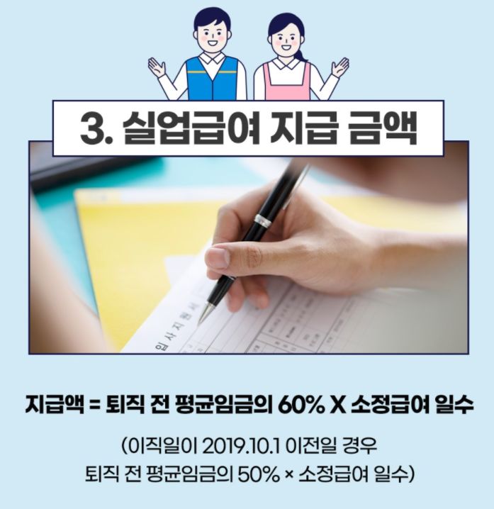 (이직일이 2019.10.1 이전은 퇴직 전 평균임금의 50% × 소정급여 일수)
