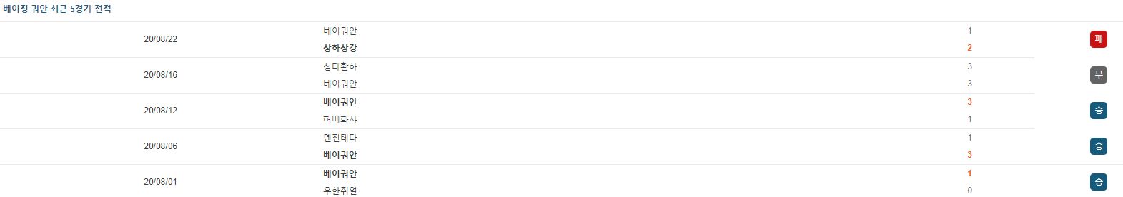 ▷최근 4경기 맞대결 : 4전 1승 3무 6득점 4실점 (베이징 궈안 우세)