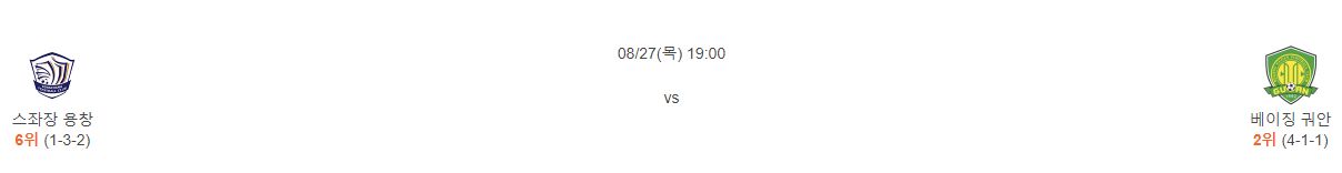 ▷최근 4경기 맞대결 : 4전 1승 3무 6득점 4실점 (베이징 궈안 우세)