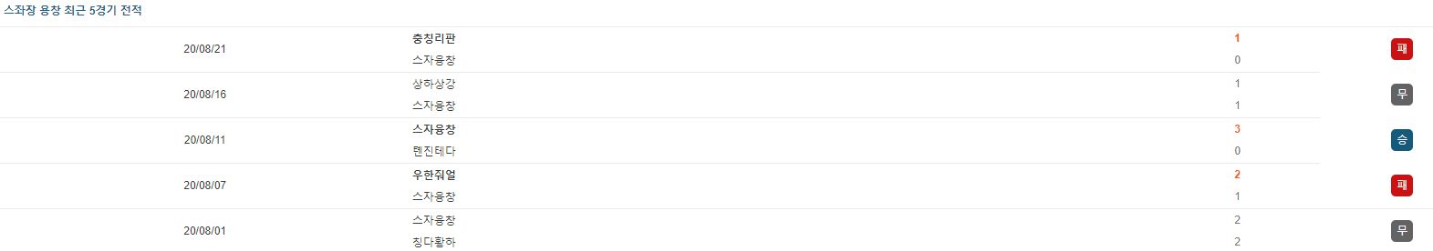 이번 시즌 리그 2경기에 출전하여 1득점을 기록한 청 퍄오(MF)가 부상으로 결장합니다. 다만 탄탄한 선수층으로 대체 가능한 선수입니다. 따라서 결장으로 인한 여파는 적어 보입니다.