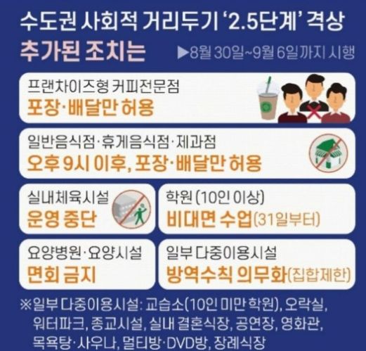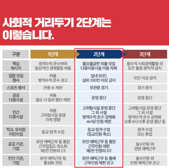▶사회적 거리두기 2단계와 2.5단계와 차이점