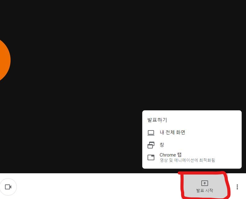 회의를 위해 각자가 갖고 있는 자료를 보며 할 때도 있는데요, 회의나 교육을 위해 발표 화면이나 자료 등을 공유를 위해서는 화면 오른쪽 하단의 발표 시작 버튼 클릭 후 창 버튼 클릭하면 됩니다. 조금 더 원활하고 빠를 진행을 위해서는 회의 때 사용할 문서 및 자료 등을 미리 화면에 열어 놓고 공유할 문서를 선택 후 공유 버튼을 클릭하면 좀 더 빠른 공유가 가능합니다.