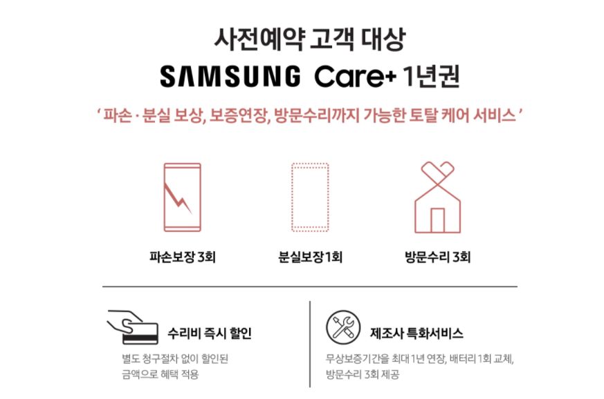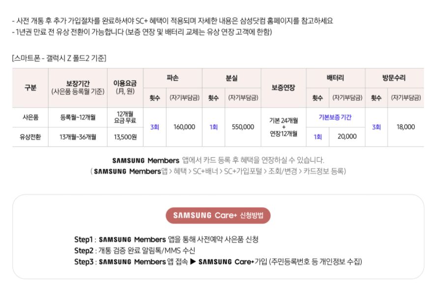 여기에 삼성 케어 플러스 1년권(파손보상 3회, 분실 보상 1회, 방문 수리 3회)이 제공, 디스플레이 파손 보험 70% 보상과 정품 보호필름 무료 부착 서비스도 제공이 됩니다. 사은품 신청 기간은 9월 30일까지이며 Samsung Members 앱 또는 z-event.co.kr 접속해서 신청하시면 됩니다.