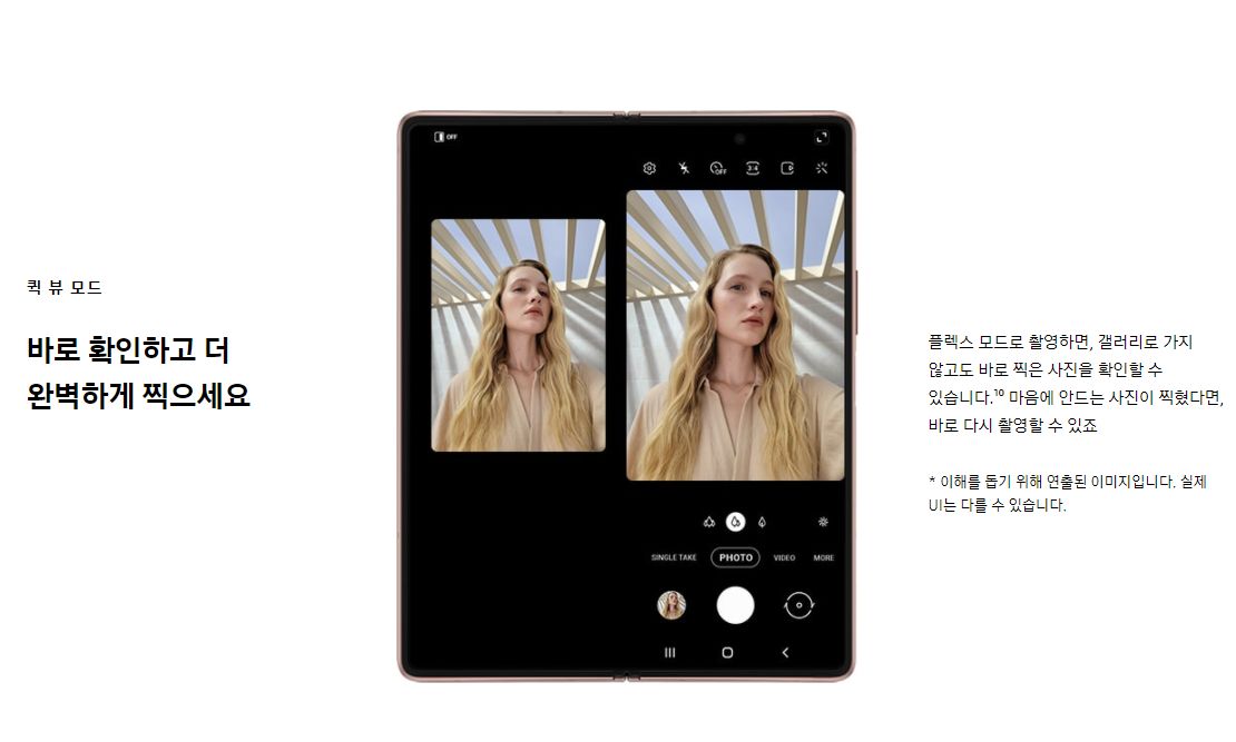 Ultra Thin Glassdml 메인 디스플레이는 192.7mm (7.6”) 다이내믹 아몰레드 2X Infinity-O Display (2,208 X 1,768)를 지원하고 있습니다. 특히 이번에 출시된 신형 모델에는 대화면 인피니티 플렉스 디스플레이는 노치를 없애고 최대한 카메라 홀과 베젤도 줄였기 때문에 보다 더 넓은 화면을 즐길 수 있을 것으로 예상됩니다.