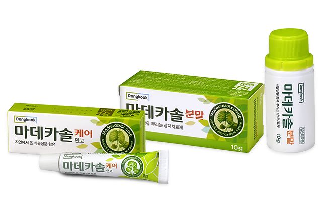마데카솔의 주요 성분인 센털라아시아티카는 피부와 비슷한 콜라켄 합성에 도움이 되기 때문에 상처가 난 부위에 흉이 지지 않게 새살이 자라게 도와주는데 효과적입니다. 마데카솔에 함유된 센테라정량추출물 성분은 아주 옛날부터 흉터 치료에 사용됐던 식물성 성분입니다.