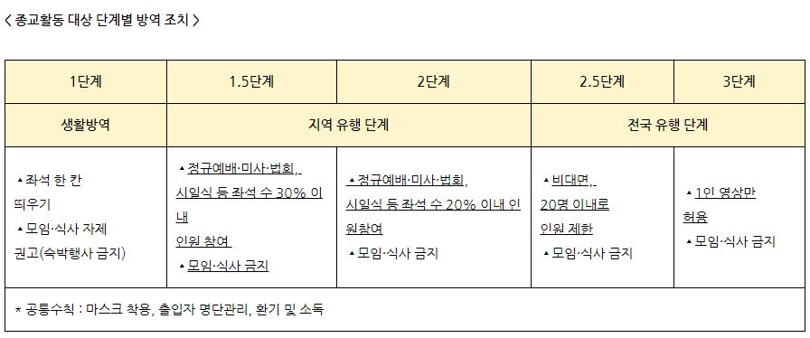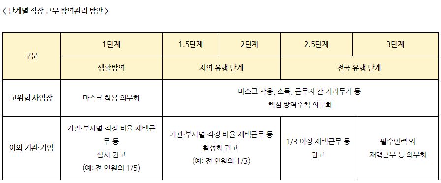 또한 정부는 국공립시설의 경우 우수한 방역 관리 상황 등을 고려해 운영을 최대한으로 보장하기로 했습니다. 사회복지시설의 경우 취약계층의 돌봄공백 최소화를 위해 위해 2.5단계까지 운영합니다. 3단계에서는 휴관과 휴원을 권고하지만 긴급돌봄 등 필수 서비스는 유지한다고 알렸습니다.