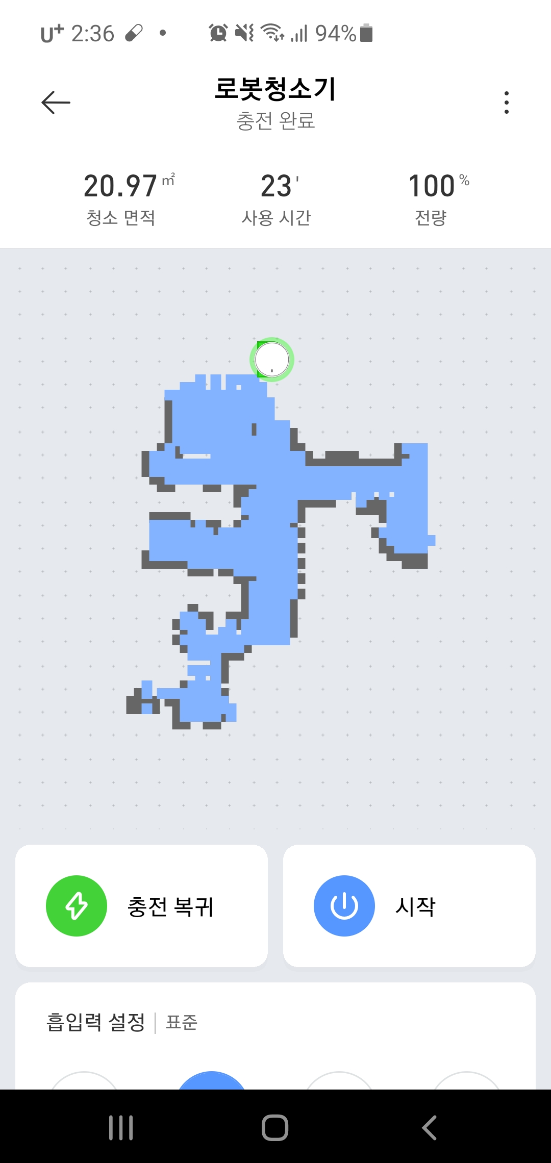 집에 어린아이들이 있어 사람이 있을땐 사용을 자제하고 있어 가족이 모두 외출할때를 이용해 지금까지 5~6회 정도 사용을 해봤습니다. 처음에는 집의 구조를 파악하느라 로봇청소기가 어리버리 하더니 지금은 청소 후 앱을 통해 보면 신기하게 저희 집 구조에 맞게 청소한 기록을 보면 신기합니다.