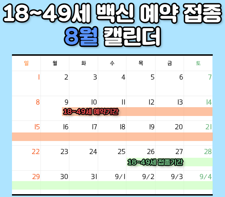 바로 18~49세 백신 접종 안내입니다. 활동성이 높은 청장년층의 백신 접종으로 코로나를 통제 할수있다고 밝혔는데요.