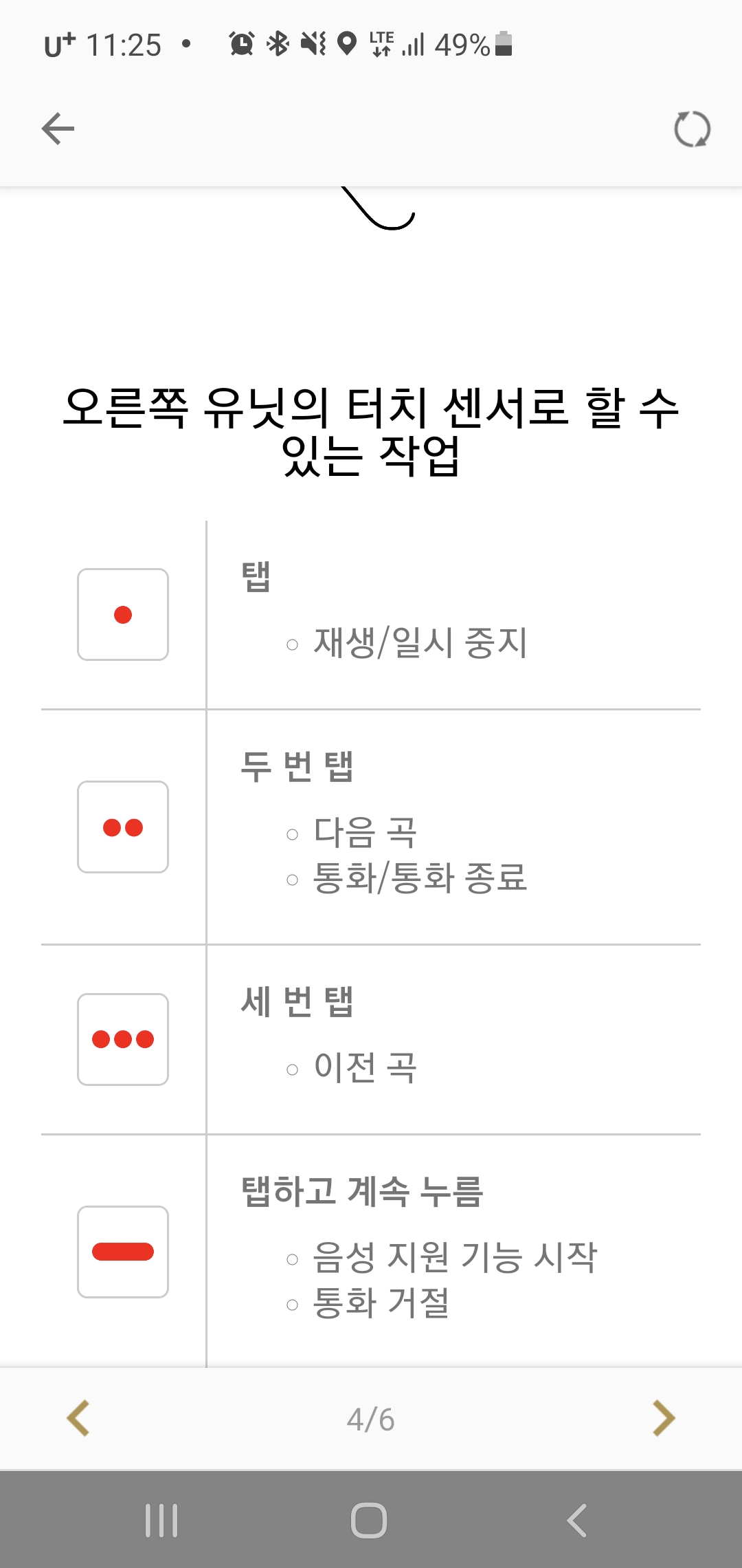 이어폰 안쪽으로는 착용 감지 센서가 있어 귀에서 탈착하게 되면 자동으로 음악이 멈추고 다시 착용하면 이어서 재생이 됩니다. 별도의 조작이 필요하지 않기 때문에 한 번 두번 사용하다 보면 꼭 필요하다고 느끼게 되는 기능 중 하나라고 할 수 있습니다.