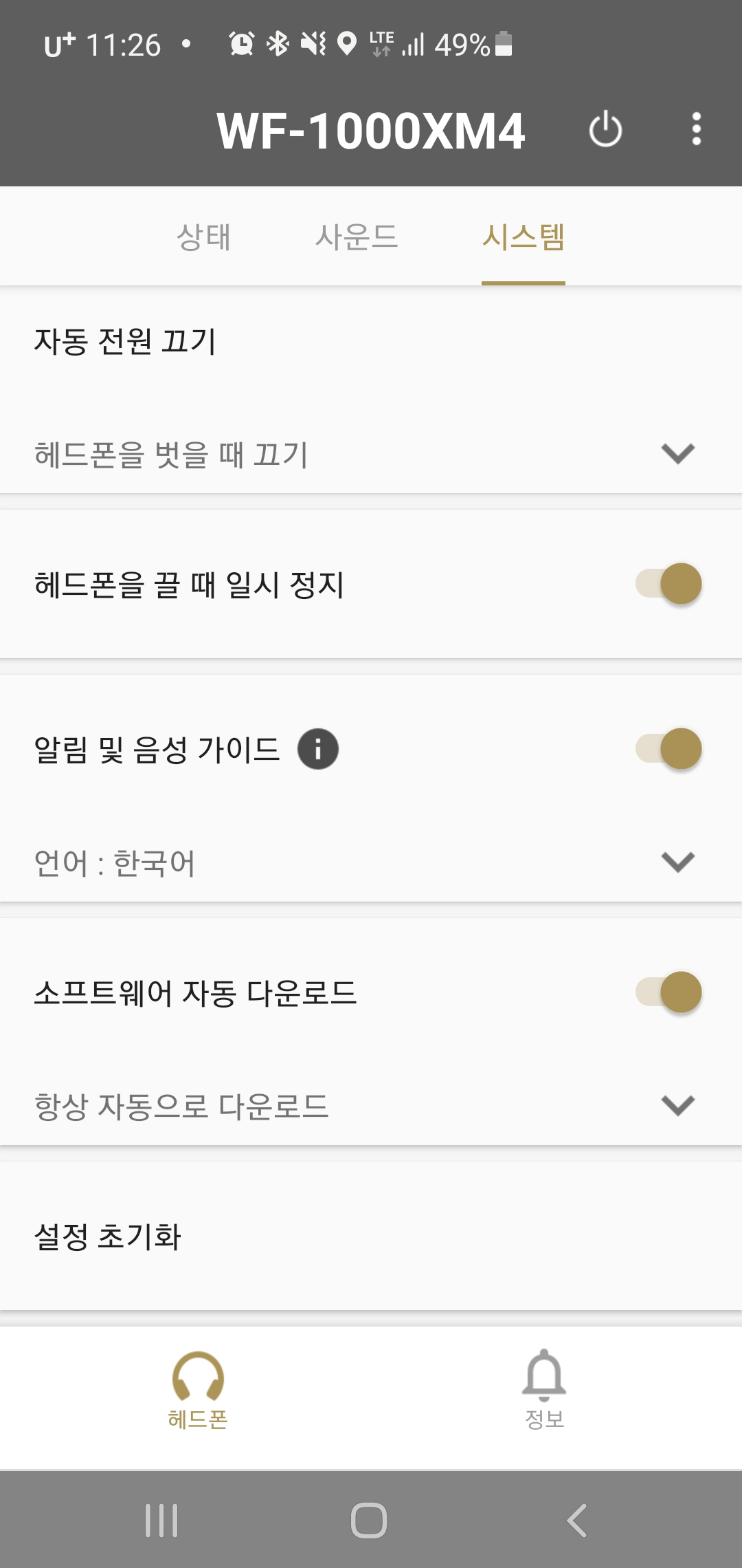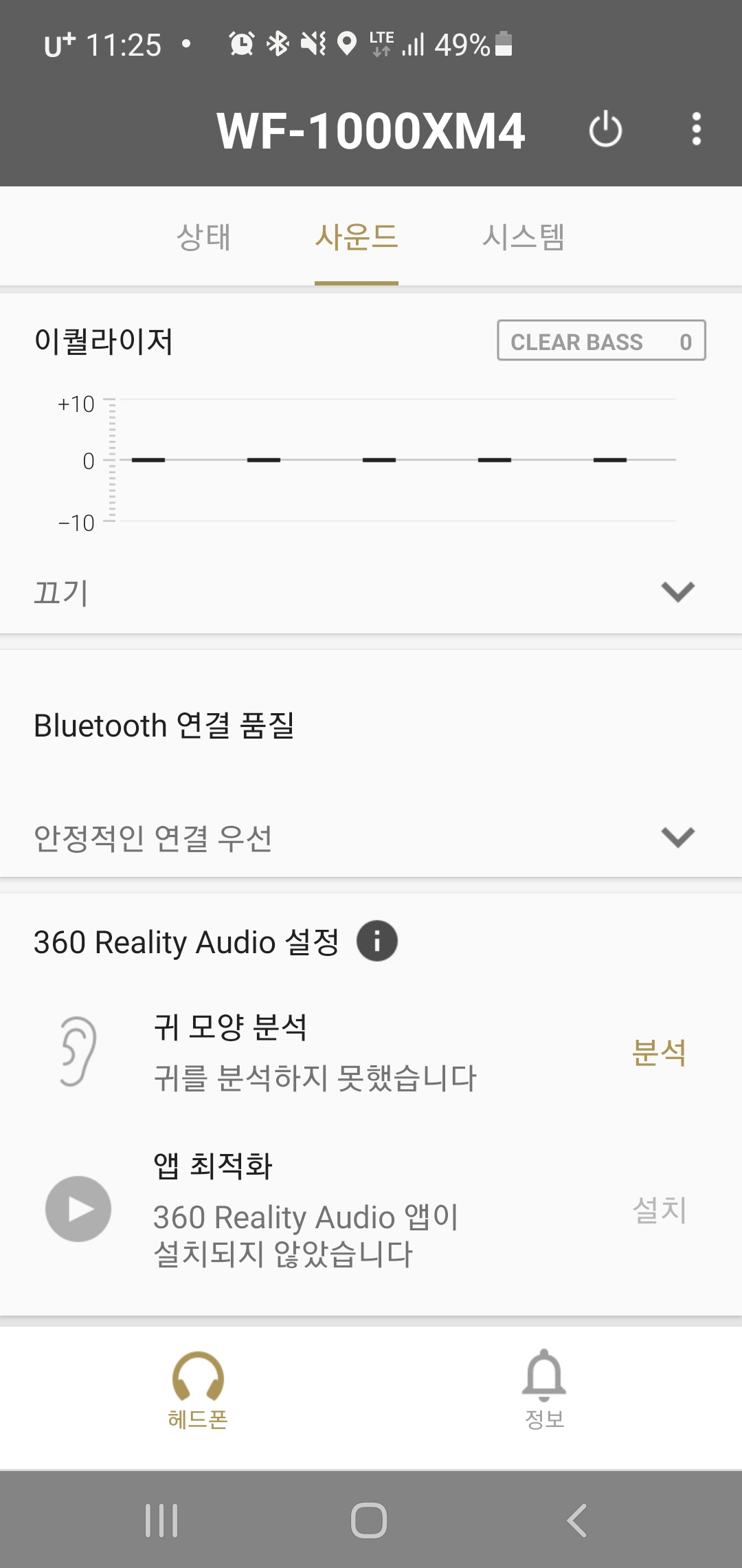 소니 wf-1000xm4를 스마트폰과 연동 후 같은 음악으로 갤럭시 버즈와 음질 비교를 해봤습니다. 개인적인 느낌은 갤럭시 버즈는 당장 서럽장으로 넣어야 할 정도로 느꼈습니다. 그래도 2년 넘게 사용한 갤럭시 버즈가 이 정도의 음질이었다니... 소니 wf-1000xm4의 음질은 가히 깡패라고 느낄 정도였습니다. 단순히 귀로만 듣는게 아닌 가슴을 때리는 그럼 느낌..