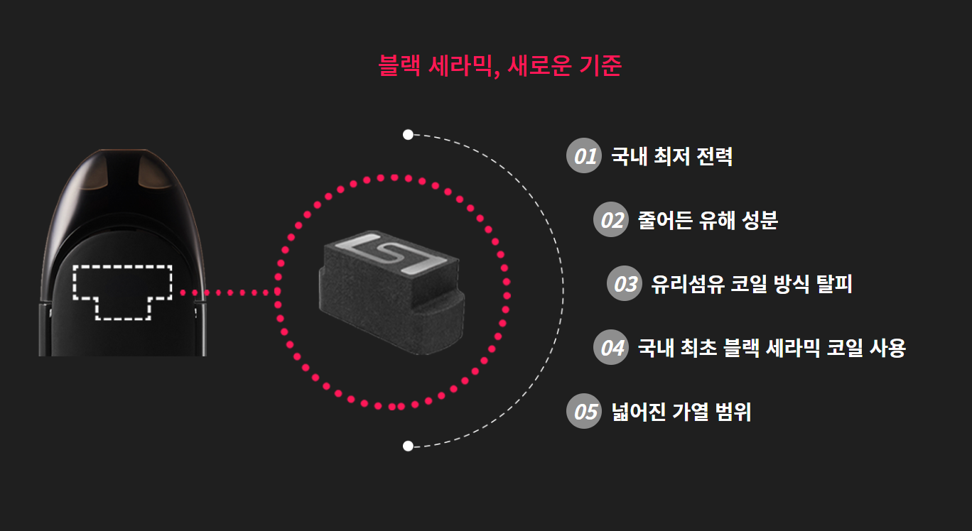 하카의 전용 액상팟 장착 시 액상 카트리지에 자석이 장착되어 있어서 부드럽고 간편하게 장착이 됩니다. 또한 기기만 충전이 되어 있다면 교체 후 바로 베이핑을 할 수 있습니다. 바로 하카 시그니처의 제로히팅 시스템으로 빠르게 베이핑을 시작할 수 있다고 합니다. 이느 국내 최저 발열온도로 유해성을 최소한으로 하고 안정감을 높였다고 합니다.