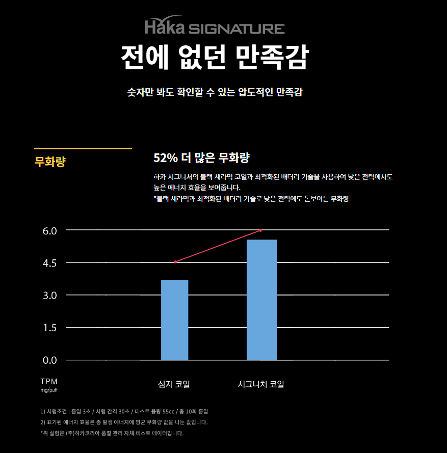 위의 좋은 점과 저의 후기를 쓰긴 했지만 액상전자담배 결국은 사용자에 따라 베이핑시 연초 느낌 타격감 등을 얼마나 따라잡을 수 있는지가 중요한데요, 지금껏 사용해본 바 전자담배 하카 시그니처는 천천히 3초 정도 흡입한다면 연무량을 실현한다고 느낍니다. 또한 시각적으로도 연무량이 풍부해야 흡연의 느낌을 강하게 받는 것 같습니다.