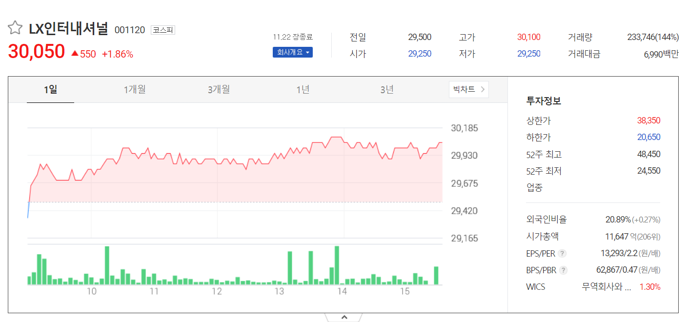 LX인터내셔널 트레이딩에서 사업 개발 및 투자, 금융 조달 및 원료 공급, 물류에 이르기까지 Value Chain 전 영역에서 글로벌 비즈니스를 수행하는 종합사업회사라 할 수 있습니다. LX인터내셔널은 작년에 배당금을 3,000원 지급했으며 배당수익률 11%에 달해 국내 배당주 순위로 꾸준히 높은 관심을 받고 있습니다. 투자의 대가 워렌버핏이 2023 일본 상사 주식을 대량 매수했는데, LX인터내셔널의 주요 사업이 상사 업무이기 때문에 관심있게 지켜볼 필요가 있습니다.