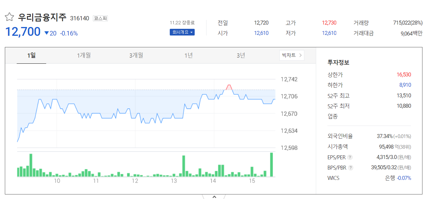 우리금융지주는 2001년 4월 세워진 국내 최초 금융지주회사로서. 정부가 외환위기 이후 공적 자금을 투입했던 한빛은행, 평화은행, 경남은행, 광주은행, 하나로종합금융 등 5개 금융회사를 하나의 그룹으로 묶어 지주회사로 우리금융지주를 세운 것입니다. 우리금융지주도 고배당주로 꾸준히 많은 사람들의 관심을 받고 있습니다. 하지만 앞서 말한 것과 같이 고금리 시대에 이자비용이 늘어가고 있는 상황이라서 은행의 이익도 감소할 수 있습니다.