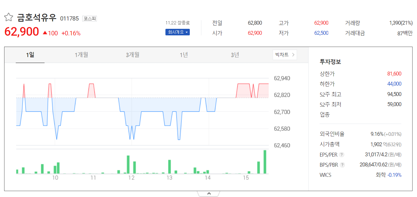 금호석유우는 금호석유의 우선주로 최근 고유가 상태가 지속되면서 정유 주식의 관심도 높아진 상태입니다. 그리하여 자연스래 배당주로서도 많은 사람들이 관심을 갖고 있습니다. 작년에 배당은 5,450원을 지급했는데, 올해도 제법 괜찮은 배당수익률을 보이지 않을까 생각합니다.