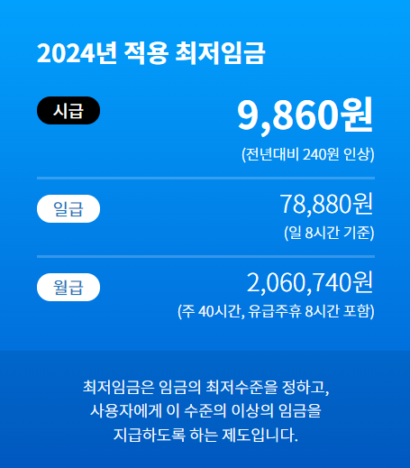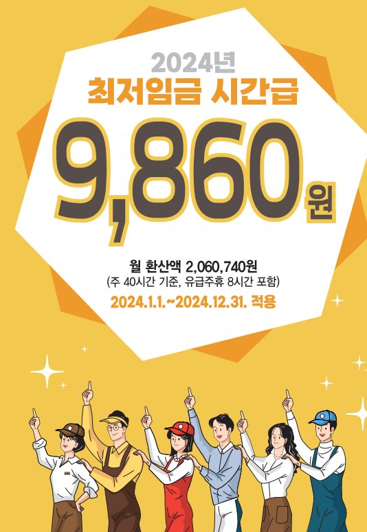 | 최저시급 | 9,620원 | 9,860원 |