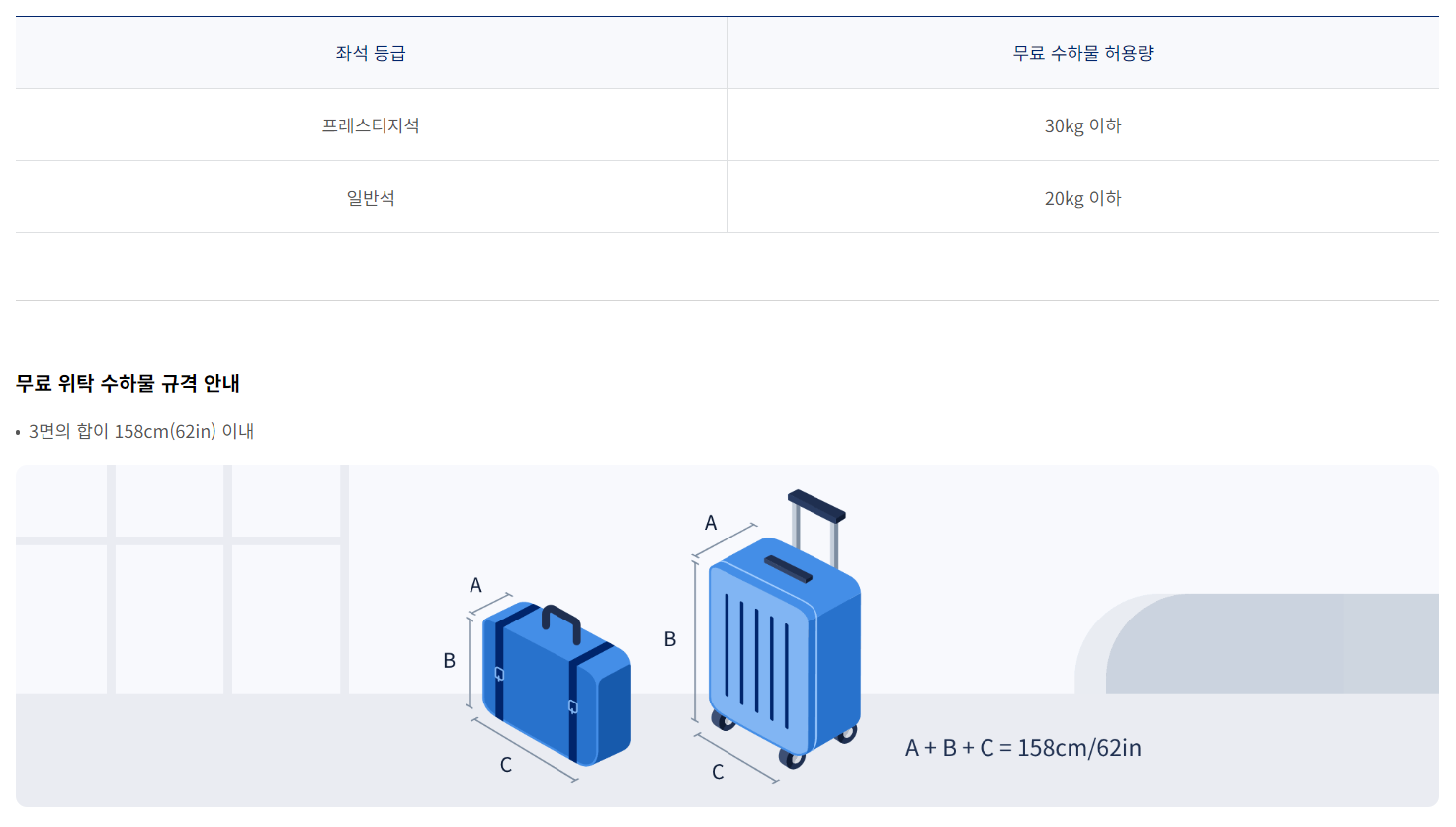 | 일반석 | 2개, 23kg | 1개, 23kg |