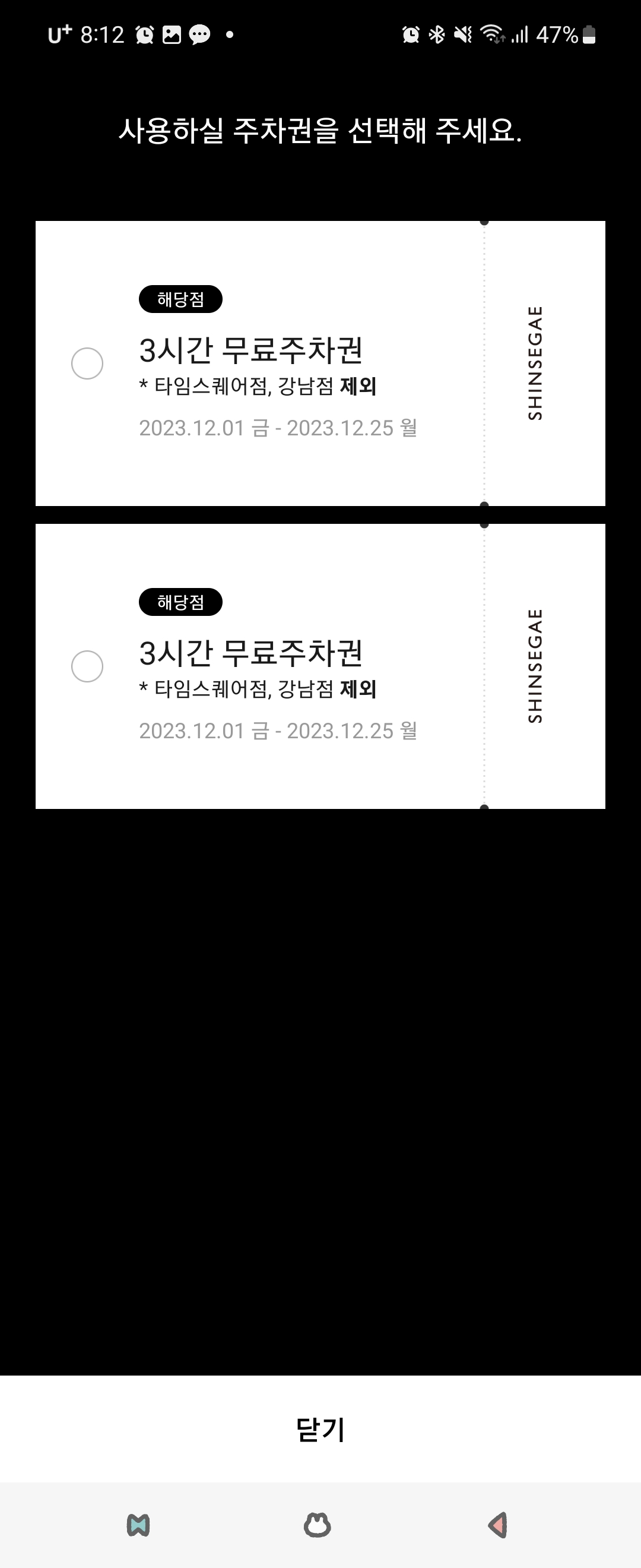 ▶ 먼저 신세계 백화점의 회원이라면 매월 3시간 주차권 2매를 지급받습니다. 아쉽게도 신세계 백화점 마산점, 타임스퀘어점, 스타필드 하남점에서는 3시간 무료 주차권 혜택을 지원하지 않습니다.