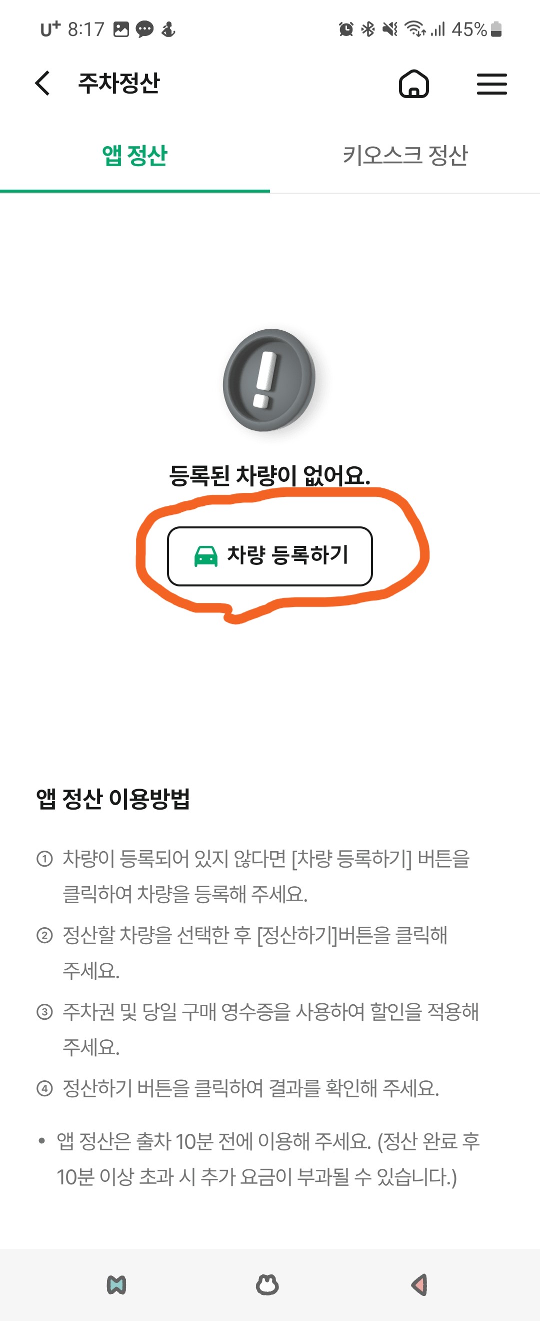 ▷ 출차 5분 전까지는 꼭 무료 주차권 사용