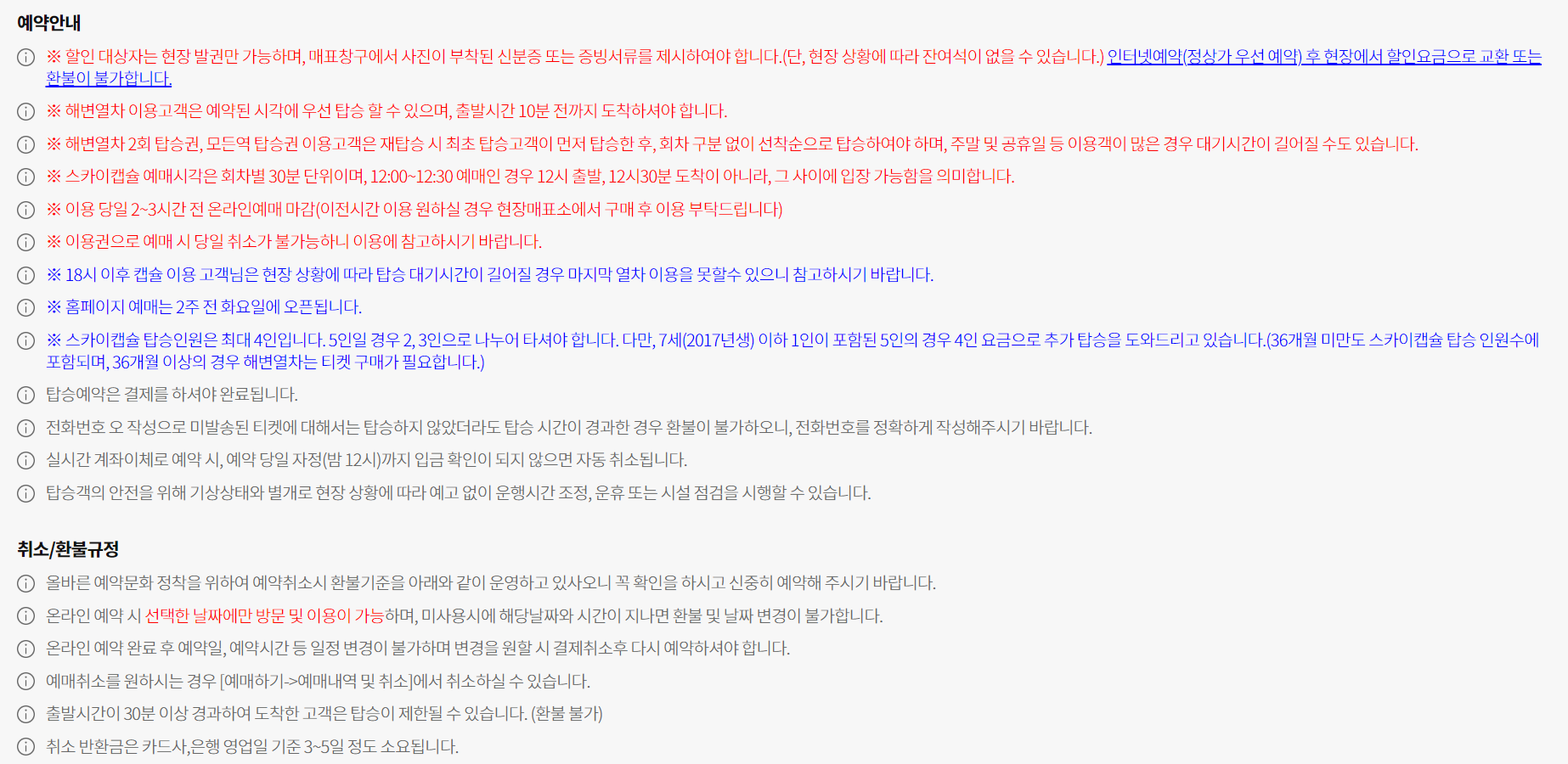 ※ 극성수기에는 탑승 상황에 따라 운영 시간이 변경될 수도 있음.