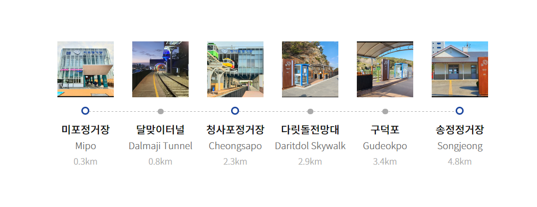 | 매표소 위치 | 미포정거장, 청사포정거장, 송정정거장 |