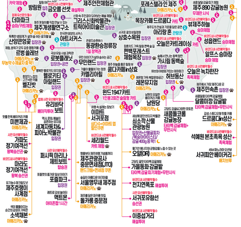 제주 투어패스 하나면 제주도 여행에서 별도의 예약없이 이용하고 싶은 곳을 저렴한 가격에 이용할 수 있기 때문에 여행사의 패키지 부럽지않은 여행 가능하니 가장 마지막의 제주도 지도와 함께 제주 투어패스의 가격과 이용방법 등에 대해 알아보겠습니다.