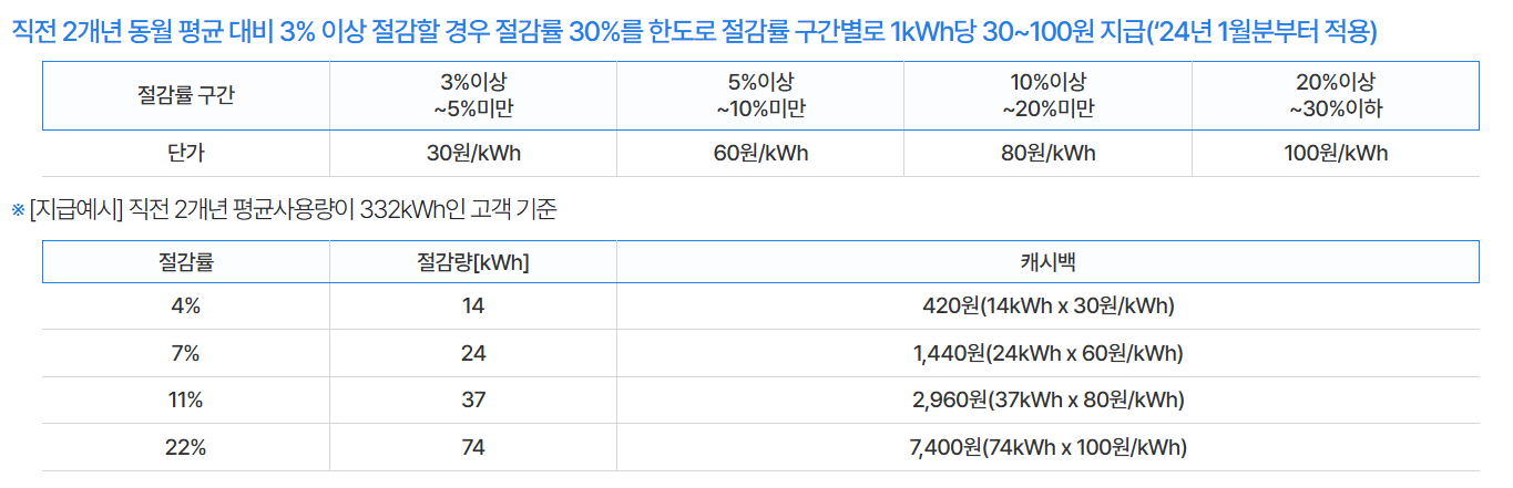 캐시백 지급방법 : 매월 산정된 캐시백은 다음달 전기요금 청구 시 반영