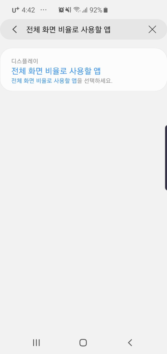 '전체화면 비율로 사용할 앱' 이라고 검색을 해줍니다!!