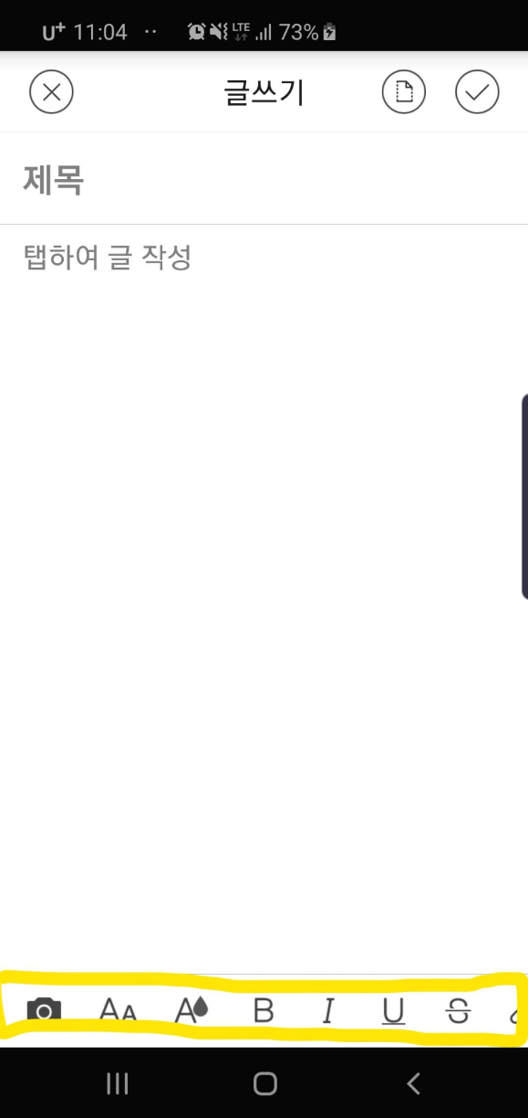 핸드폰으로 임시저장 후 임시저장글 불러오기를 해야 하는데 위의 사진처럼 임시저장 글 불러오기 아이콘이 있어야 하데 글편집에 관한 아이콘들만 보였습니다.