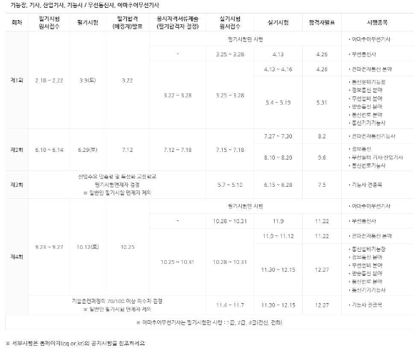 응시자격이 다양하지만 통신관련 자격증이다 보니 통신관련 학과나 실무에 종사를 해야지만 응시할 수 있는 조건들입니다. 저는 위의 응시자격중에 '동일 및 유사 직무분야의 다른 종목 기사 등극 이상의 자격 취득자', '실무경력 4년 이상' 요건에 해당되어서 응시 할 수 있었습니다.